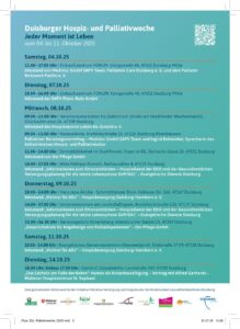 Das Thema am 09.10.2025: “ Informationen zum ehrenamtlichen Hospizdienst und zur Gesundheitlichen Versorgungsplanung fĂĽr die letzte Lebensphase bei den Ev. Diensten Duisburg „.