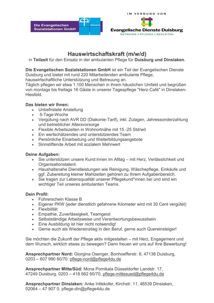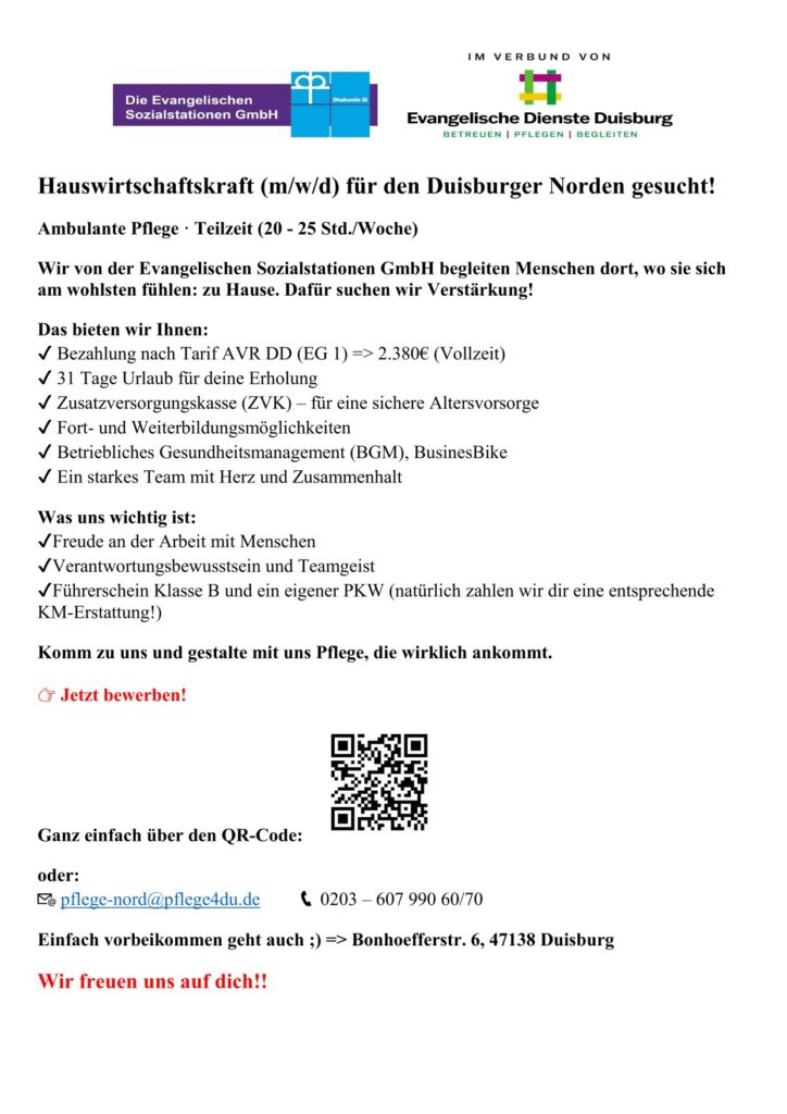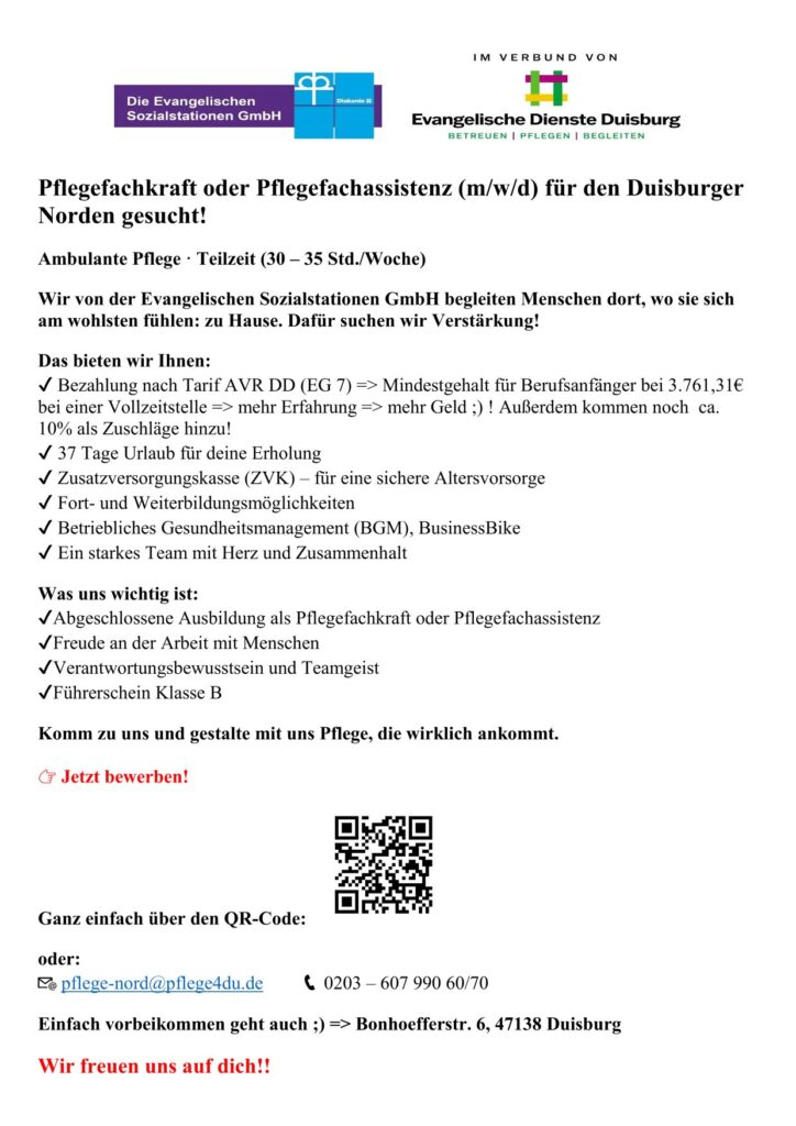 Stellenangebote in der Pflege in Duisburg-Mitte/Süd und -Nord sowie Dinslaken