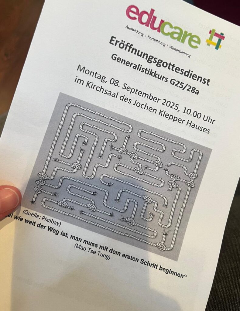 „Egal wie weit der Weg ist, man muss mit dem ersten Schritt beginnen!“ Unter diesem Motto fand gestern der Eröffnungsgottesdienst für die neuen Auszubildenden der Generalistikkurse G25/28 statt. Wir freuen uns sehr, dass wir in der ambulanten Pflege mit Adrianna Lauer und Samuel Hörnschemeyer wieder 2 Azubis gewinnen konnten! Euch beiden -und natürlich allen anderen-