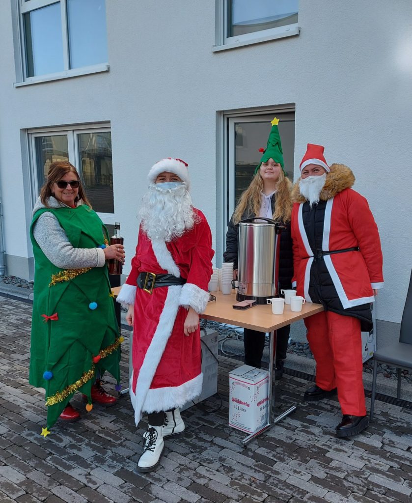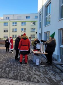 Eigentlich sollte es eine schöne Weihnachtsfeier im Warmen werden. Doch „Corona“ ließ sie nicht zu! Egal, dachte sich das Betreuungsteam von unserem „Betreuten Wohnen am Landschaftsparkt“ und organisierte kurzerhand eine Glühwein- und Kinderpunschparty draußen auf dem Hof!