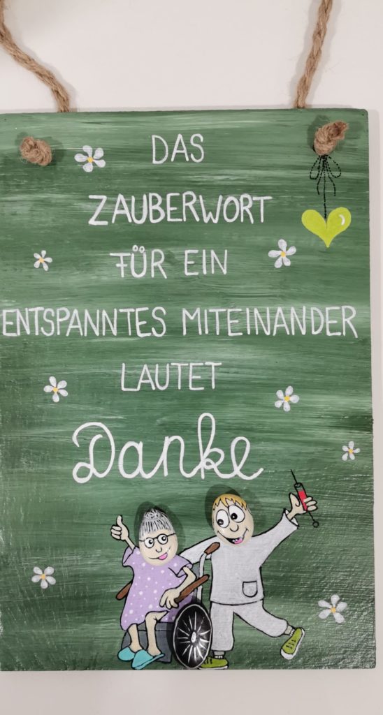 Es gab wieder tolle Weihnachtsgrüße von unseren Patienten & Angehörigen. Die Stationen freuen sich natürlich über so liebe Grüße zur Weihnachtszeit… Ein MA brachte direkt ein handgefertiges Schild zum aufhängen mit. Es stellt ihn und die Pat gemeinsam dar. Und dem Motto können wir uns nur anschließen „Das Zauberwort für ein entspanntes Miteinander lautet DANKE!“ Ein riesen Dankeschön an unsere Patienten für die vielen tollen Weihnachtsgrüße und für das Vertrauen in Zeiten wie diesen.