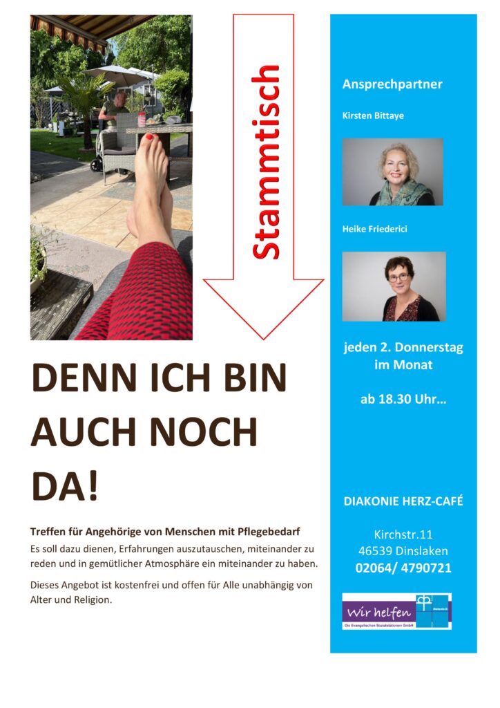Letzte Woche Donnerstag fand schon der 2. Stammtisch für pflegende Angehörige im Diakonie Herz Café statt und auch wenn wir bisher eine kleine Gruppe sind, so kamen schon 3 neue Besucher zu uns. In erste Linie gilt es, Erfahrungen auszutauschen, neue Wege kennenzulernen aber auch sich Wissen anzueignen.